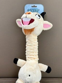 This happy goat is great for tuggy and entertaining your dog! He has a squeak and the long neck allows for easy carry!
